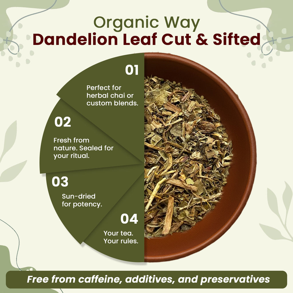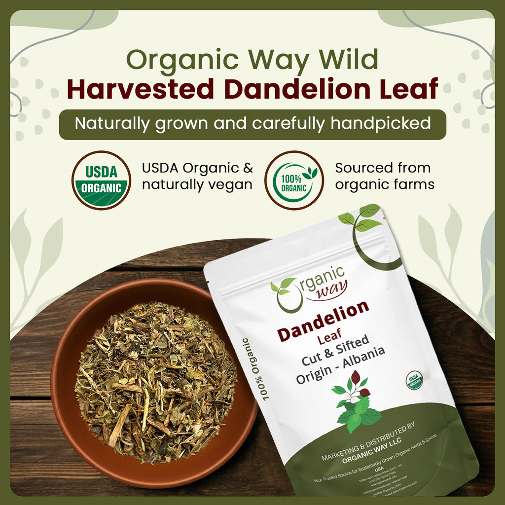 Our cut and sifted dandelion leaf means that the herb is not sold in whole form, but rather "cut" into smaller pieces and then "sifted" to remove the small pieces and dust that result from the cutting process."