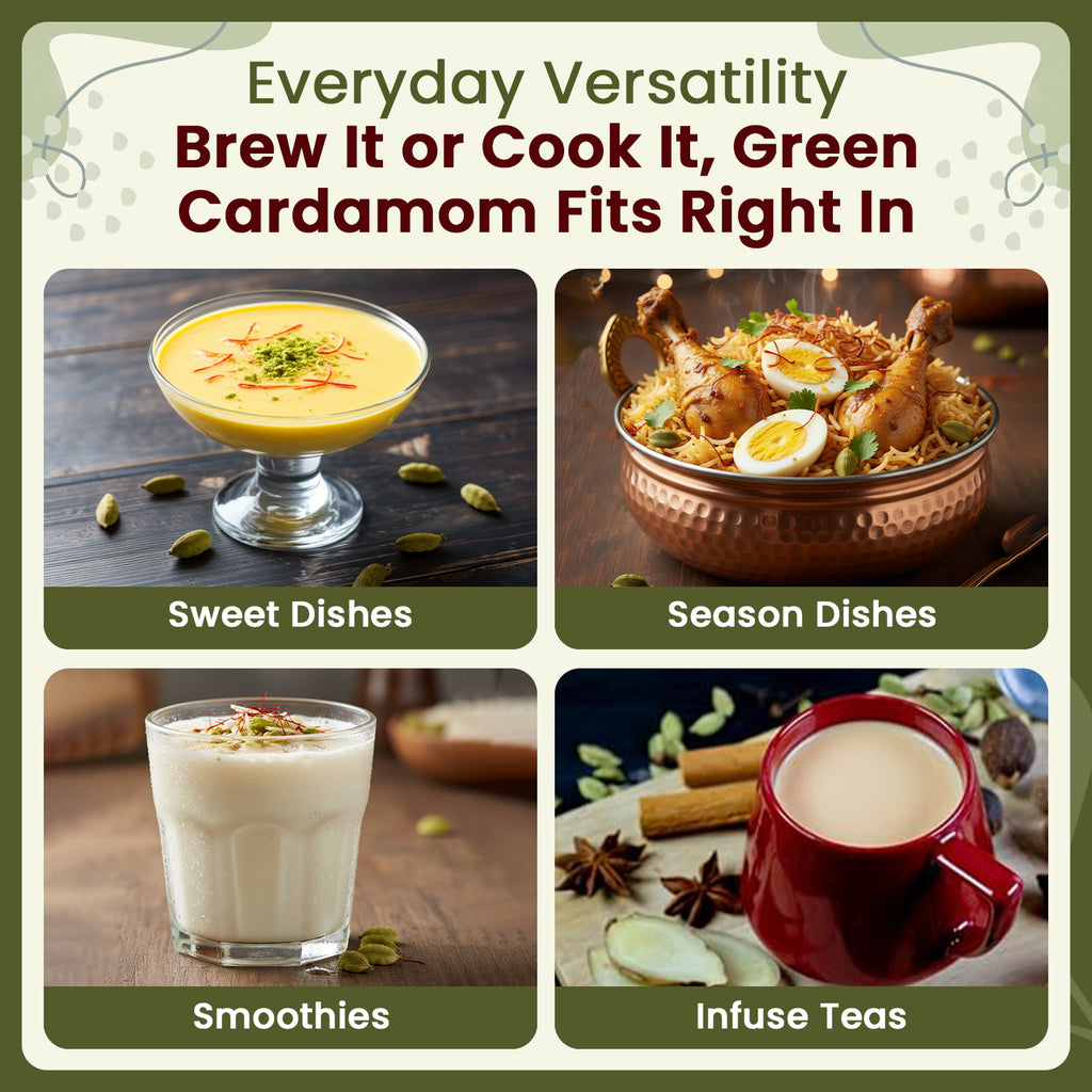 • Authentic Green Cardamom Whole Pods processed in a hygienic environment
