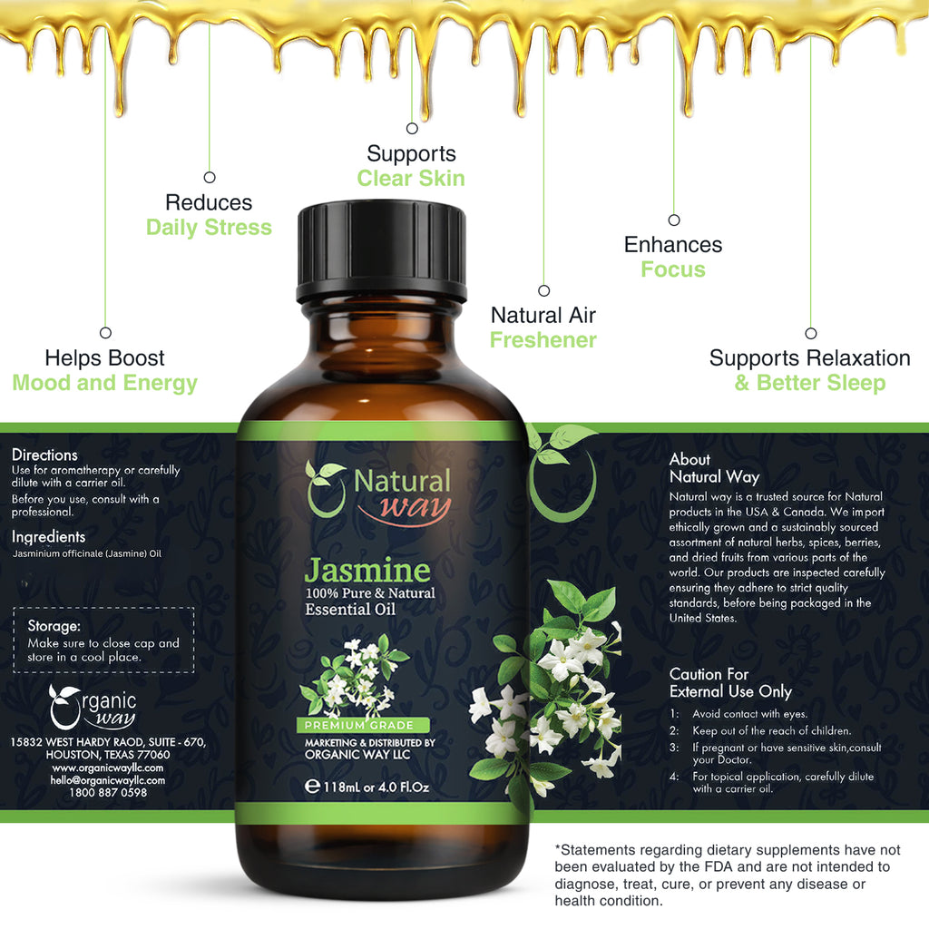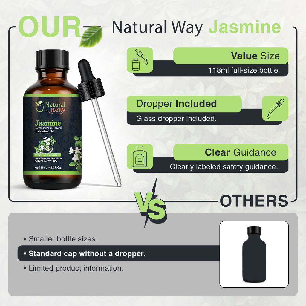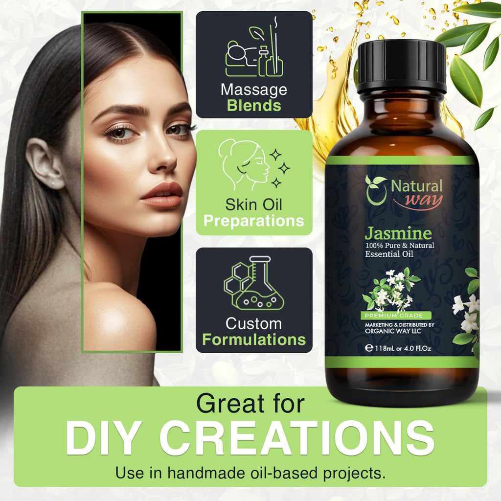 Natural Way Jasmine Essential Oil | Premium Grade Essential Oils for Hair Care, Oil for Skin, Aromatherapy, & Diffuser | Essential Oil for Skin Tag Remover, Massage Oil & Humidifier Use | 4 Fl Oz (120 mL)
