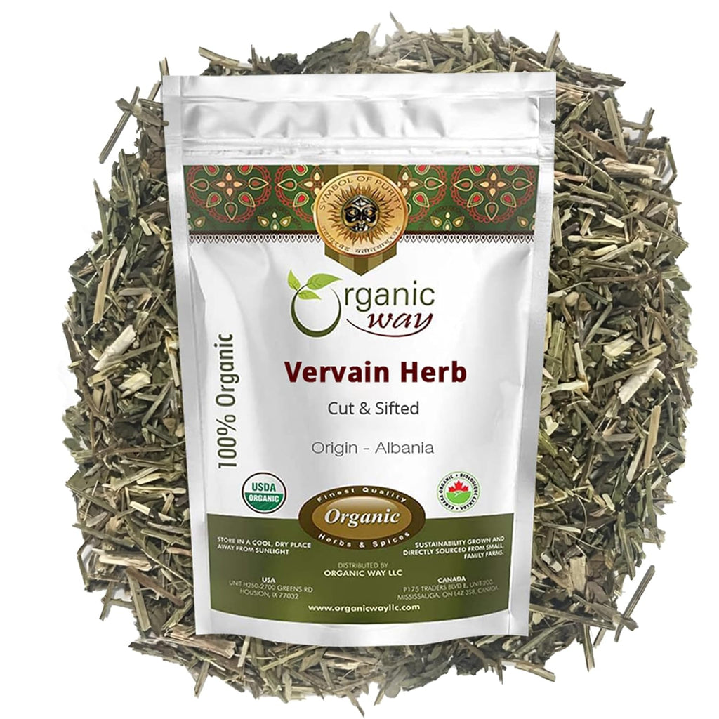 Organic Way Vervain Herb (Verbena officinalis) Cut and sifted | Herbal Tea | Non-GMO & Gluten Free | Resealable Bag | Raw from Albania